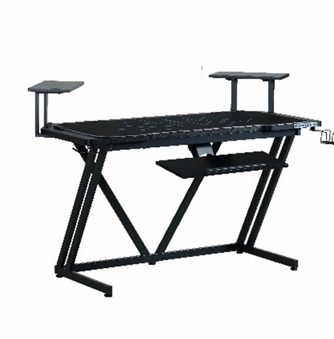 Ce bureau gaming est doté d’une finition carbone et d’un tapis de souris avec led recouvrant l’intégralité du plateau. Ses dimensions sont parfaitement adaptées aux petits espaces et ce bureau peut supporter sans problème une tour et son écran : 120(L)x60(l)x75(h). Les deux pieds en « Z » disposés à chaque extrémité assurent la stabilité et permettent d’accueillir sans gêne un fauteuil gaming.