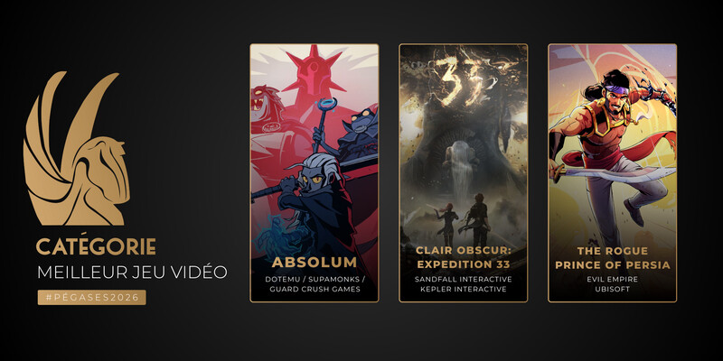 L’Académie des Arts et Techniques du Jeu Vidéo est heureuse d’annoncer la liste des jeux composant les 18 catégories de la Cérémonie des Pégases 2026. Cette année, la cérémonie se tiendra le jeudi 5 mars 2026 à 20h00 à la Cigale (Paris).