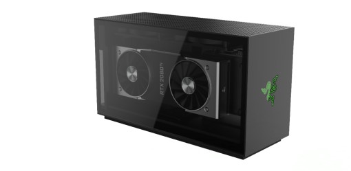 Le châssis ultra-compact est un bloc tout en aluminium flanqué de verre trempé des deux côtés, mettant en valeur le GPU dans toute sa splendeur, avec une conception d’aération ouverte sur la partie supérieure pour maintenir un refroidissement constant. L’arrière dispose d’un mécanisme de « traîneau » verrouillable et coulissant qui s’ouvre avec un minimum d’effort, permettant un accès rapide aux composants internes sans avoir besoin d’outils.