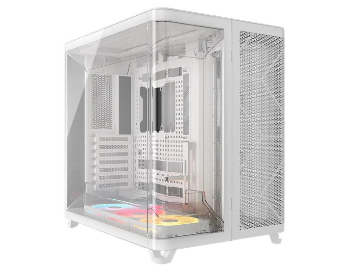 Les deux panneaux en verre incurvés s’ouvrent vers l’extérieur grâce à des charnières dissimulées afin de faciliter l’accès à tous les composants, ce qui rend l’assemblage et la mise à niveau du PC beaucoup plus simples.