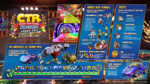 Bienvenue au Cirque Néon, le prochain Grand Prix au programme de Crash Team Racing Nitro-Fueled cet automne. À partir du 8 novembre, les joueurs qui prendront part à cette saison électrisante de Grand Prix seront en mesure de courir sur le nouveau circuit exceptionnel, Cirque Koala, alors qu’ils complètent des défis pour gagner des points Nitro.