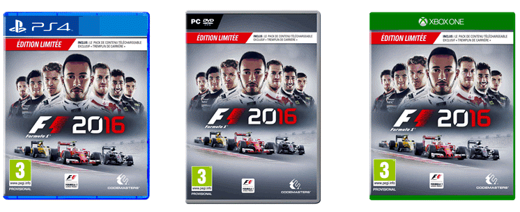 Codemasters a également annoncé qu’une édition limitée du jeu sera disponible en précommande, incluant le pack de DLC exclusif « TREMPLIN DE CARRIERE F1 2016 », permettant aux joueurs de se lancer dans leur carrière avec une longueur d’avance. Ce pack fournira aux joueurs un bonus de recherche et développement qui appliquera un pourcentage d’augmentation à tous les crédits de recherche et de développement gagnés par le joueur dans chaque session du nouveau mode carrière. Le pack comprendra aussi des motifs de casques et d’ordinateurs portables en carrière. Une fois que le joueur aura fait son choix de casque, le motif sera également appliqué sur l’ordinateur portable du menu Carrière.