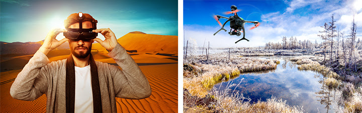 - VR Goggles – Breveté par Ehang, le casque de réalité virtuelle VR Goggles crée une expérience de pilotage immersive sans précédent, offrant aux utilisateurs la possibilité de « voir » à travers les yeux de leur drone et ce sans latence. Grâce à la fonctionnalité innovante de reconnaissance de mouvement intégrée au casque, les utilisateurs peuvent intuitivement diriger l’angle de caméra du drone d’un simple mouvement de tête.
