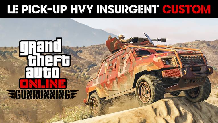 GTA Online – Chaque seigneur de guerre de Los Santos qui se respecte connaît l’élan irrésistible et la puissance panoramique que seul le pick-up HVY Insurgent peut offrir. Dès aujourd’hui, transformez-le en pick-up Insurgent custom dans l’atelier de véhicules et d’armes de votre centre d’opérations mobile pour lui offrir un tas d’avantages destructeurs : du minigun calibre 50 aux mines de proximité, votre équipe de techniciens est prête à vous aider à débloquer de nouvelles améliorations redoutables. Et préparez-vous à vous lancer dans des covoiturages très dangereux, grâce à votre nouveau véhicule personnel qui peut accueillir jusqu’à huit de vos camarades.