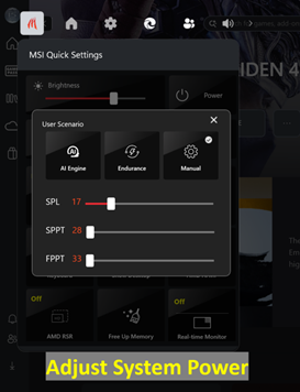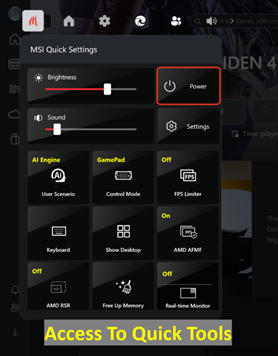 - Expérience de jeu personnalisée : les réglages rapides MSI sont intégrés dans la Xbox Game Bar, ce qui permet aux utilisateurs de facilement accéder à toute une collection d’outils et d’ajuster les paramètres d’alimentation en un seul clic. Cette intégration autorise les utilisateurs à personnaliser leur expérience gaming sans avoir à naviguer dans plusieurs applications.