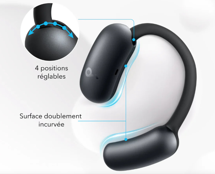 soundcore propose plusieurs produits à écouteurs ouverts et de type conduction osseuse conçus pour les personnes qui écoutent en extérieur. Leurs modèles associent souvent des montures légères à des crochets d’oreille flexibles pour maintenir les écouteurs stables lorsque vous courez, faites du vélo ou vous entraînez. De nombreuses options soundcore offrent une grande autonomie et une charge rapide, afin que vous passiez plus de temps en mouvement et moins de temps branché.La marque met également l’accent sur un son équilibré et des appels clairs, ce qui aide lorsque vous passez de la musique aux indications de navigation ou à de courtes conversations.