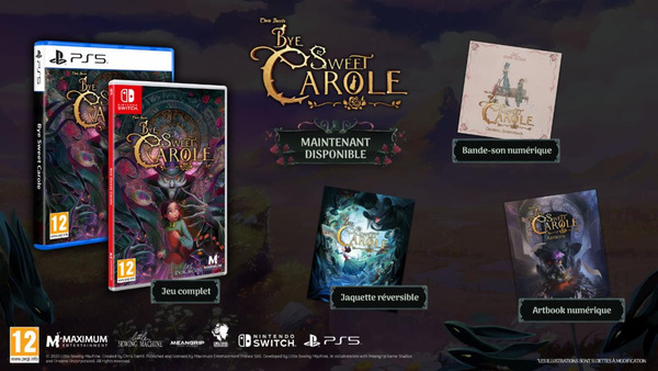 Maximum Entertainment, en partenariat avec le studio italien Little Sewing Machine et Meangrip Studios, sont fiers d’annoncer le lancement mondial du jeu de Chris Darril ; Bye Sweet Carole, une aventure d’horreur très attendue inspirée par l’âge d’or du cinéma d’animation à la main. Le jeu est maintenant disponible sur PlayStation 5, Nintendo Switch, Xbox Series X et PC via Steam.
