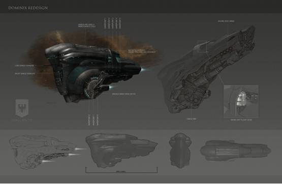 Le vaisseau légendaire de la Fédération Gallente, le Dominix, a bénéficié d’un ravalement de façade qui tranche avec son antique aspect utilitaire. Il ressemble maintenant à un vrai navire de combat.