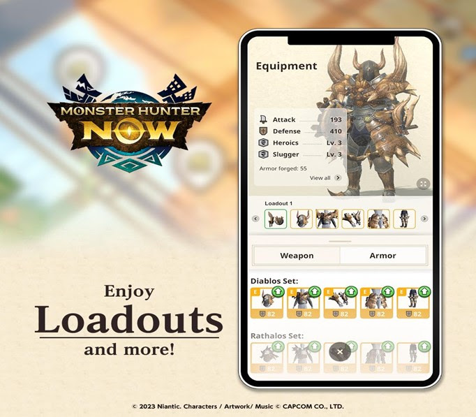 Déjà présente dans les autres volets de Monster Hunter, la fonctionnalité Arsenal est disponible dans Monster Hunter Now pour rendre la chasse plus facile en permettant aux chasseurs de paramétrer à l’avance leur équipement et leurs armes à volonté. La fonction Arsenal, largement demandée par les participants du soft launch du jeu, permet aux joueurs de sélectionner leur armure, leurs armes et leurs équipements avant la rencontre avec un monstre, rendant plus simple le changement complet d’équipement pendant leur chasse.