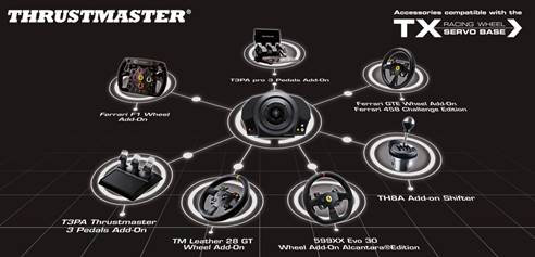 Le TX Racing Wheel Leather Edition : un pack pour une immersion ultime sur Xbox One comme sur PC qui regroupe le TX Racing Wheel Servo Base ainsi que le TM Leather 28 GT Wheel, un volant cuir de 28cm et un pédalier 3 pédales T3PA.