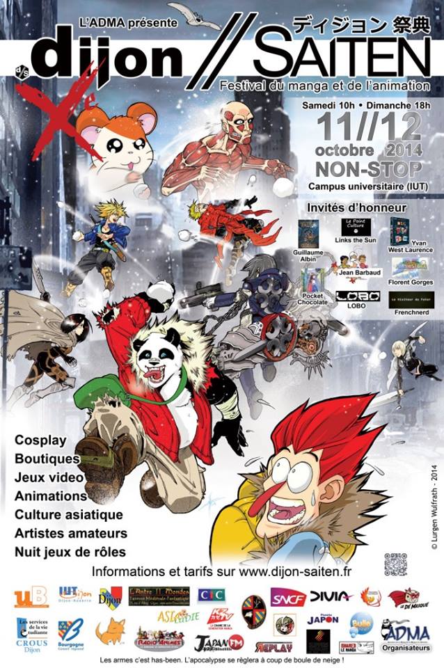 Le Dijon//SAITEN : Festival du Manga et de l’Animation, organisé par l’ADMA (Association pour la Découverte du Manga et de l’Animation) a fêté ses 10 ans le week-end du 11/12 octobre 2014 et nous y étions !