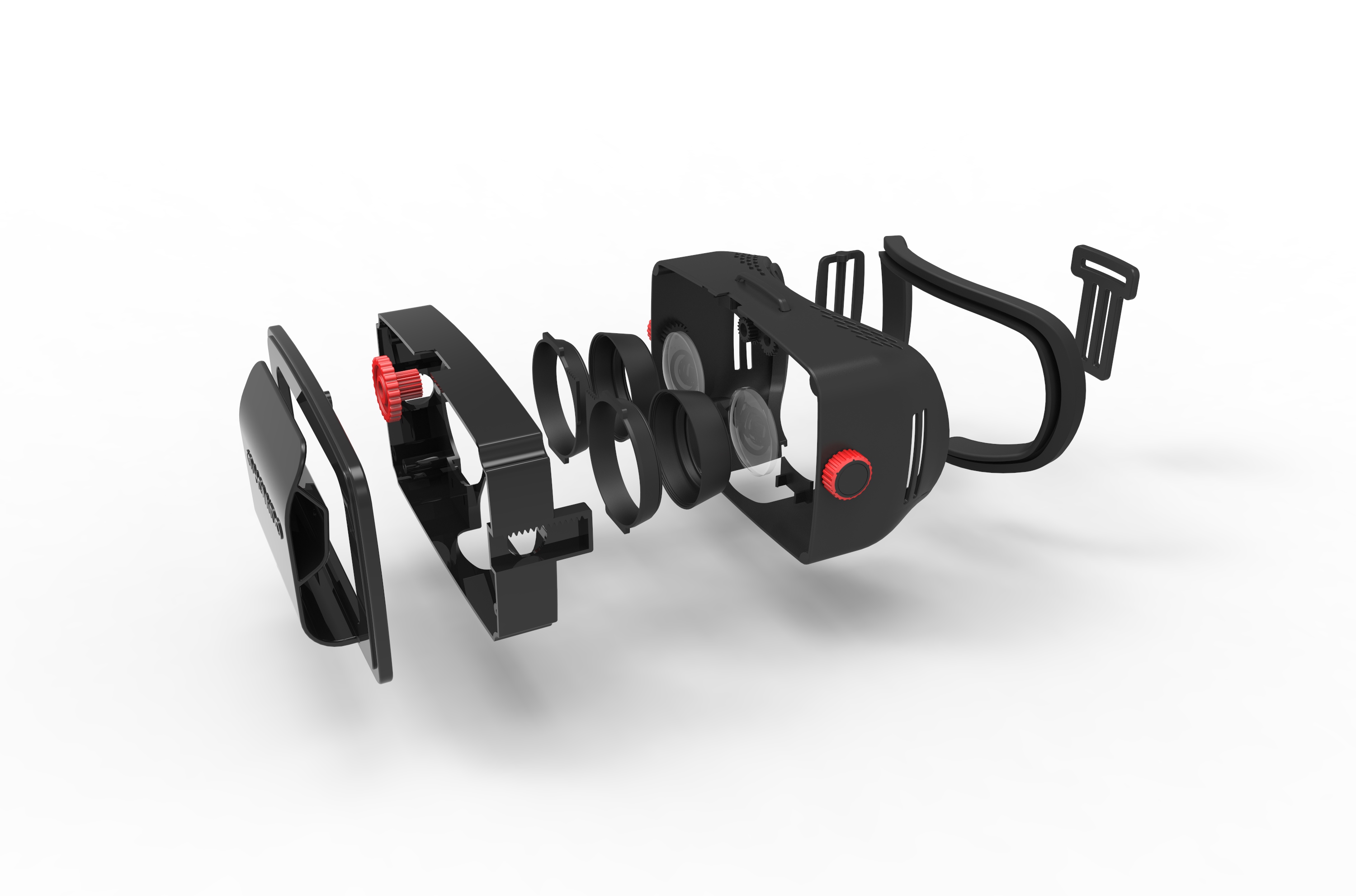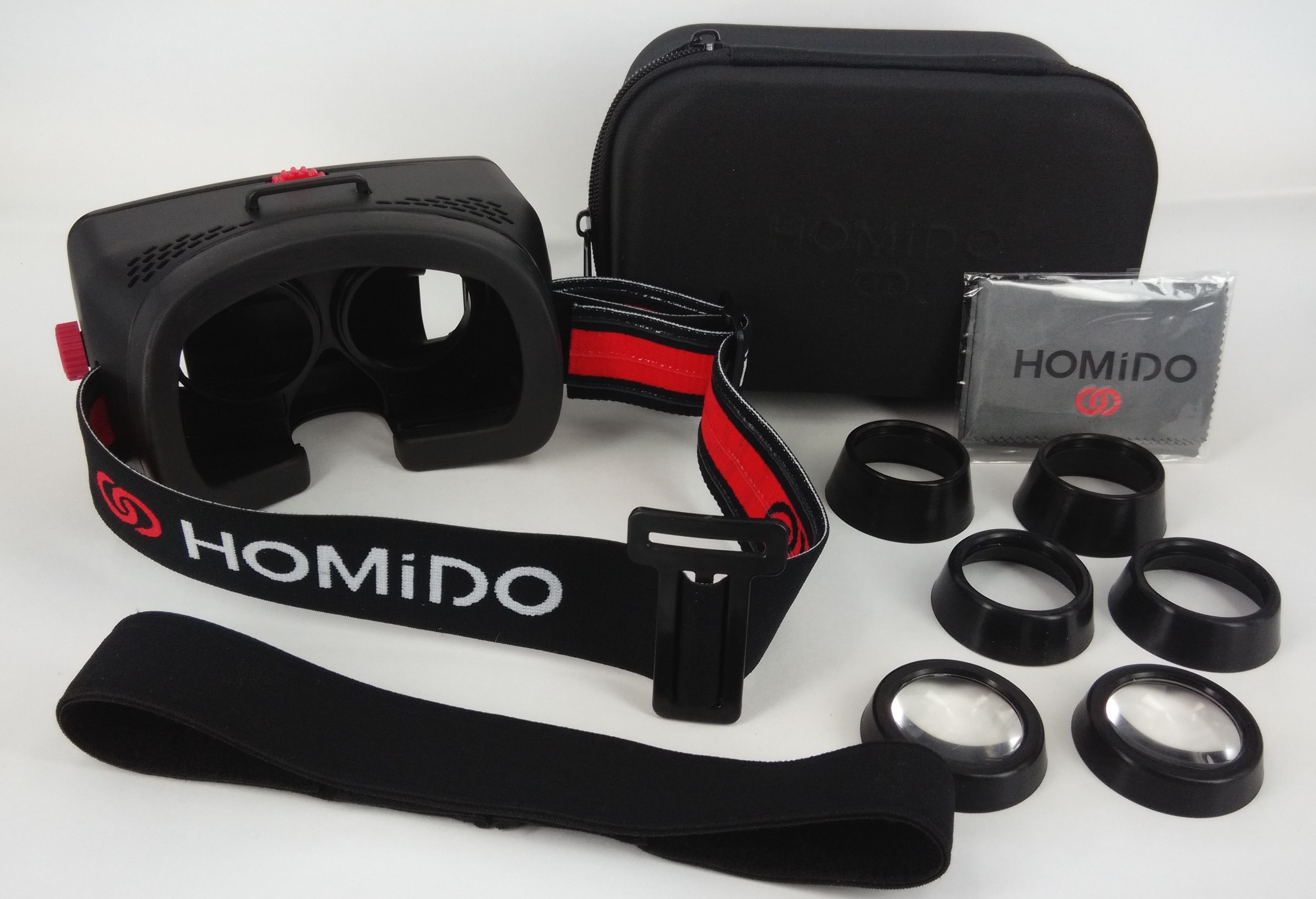 Disponible pour seulement 70€, le casque Homido est clairement une bonne surprise et ce, dès l’ouverture du paquet ! En effet le contenu de la boite est vraiment important, surtout pour le prix annoncé. Vous y trouverez ainsi un petit manuel vous présentant les compatibilités de l’appareil, une boite rigide afin de transporter et de ranger simplement votre casque, une lingette, des lentilles pour les différents niveaux de vue. Mais bon ce qui nous intéresse c’est le casque n’est-ce pas ? Celui-ci est juste impressionnant que ce soit au niveau des finitions ou tout simplement du design. En effet, ce dernier est super confortable grâce à une petite mousse souple sur le pourtour du masque, il est léger et permet de nombreuses molettes de réglages afin de s’adapter à la plupart des utilisateurs. A noter que les sangles du casque sont ajustables facilement et permettent à l’Homido de rester bien fixé même en lui imposant de nombreux mouvements de tête. Appréciable et obligatoire pour une bonne expérience.
