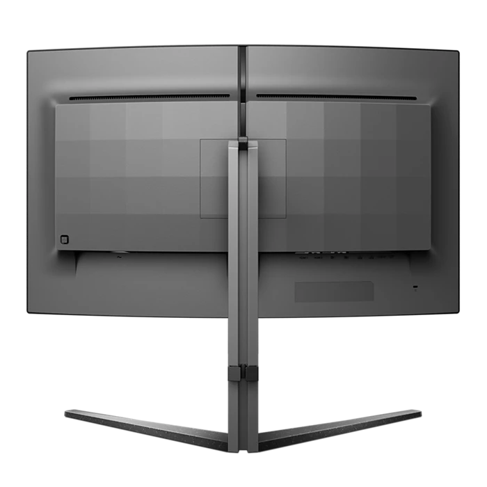 Le moniteur adopte une esthétique sobre et contemporaine. La courbure 1000R de la dalle VA de 31,5 pouces est bien intégrée, immersive sans être agressive. Le châssis noir mat, dépourvu de fioritures, se distingue par sa finesse d’exécution. Le pied, au design en V inversé, assure une bonne stabilité, même si sa base occupe une surface importante sur le bureau. L’ergonomie est complète : réglage en hauteur (130 mm), inclinaison (−10°/↑1°) et pivot latéral (±25°). Il intègre un joystick de navigation pour l’OSD à l’arrière droit de l’écran, malheureusement peu réactif – un délai de 4 à 5 secondes avant l’affichage du menu rend son usage frustrant. L’ensemble reste cependant bien assemblé, sans jeu ni craquement, avec une dalle solidement enchâssée, et un design suffisamment neutre pour s’adapter à des contextes professionnels. On notera toutefois que la courbure accentuée peut générer une légère distorsion géométrique sur des lignes droites, perceptible dans certains usages de bureautique avancée ou de création graphique, sans être véritablement rédhibitoire. En matière d’écoconception, Philips met en avant l’utilisation partielle de plastiques recyclés ainsi qu’un emballage majoritairement recyclable, ce qui s’inscrit dans une démarche plus responsable appréciable, même si elle reste discrète sur l’appareil lui-même. La connectique est honnête : 2x HDMI 2.0, 2x DisplayPort 1.4, un hub USB 3.2 avec quatre ports (dont deux à charge rapide), sortie casque 3,5 mm. Pas de USB-C à l’horizon – une absence regrettable pour une configuration moderne.