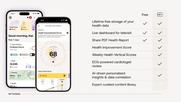 - Withings Health Assistant (24/7) : Un assistant IA répondant de façon personnalisée à toutes ses questions sur sa santé et les moyens de l’améliorer. Des conseils personnalisés générés par l’IA sont également envoyés régulièrement.